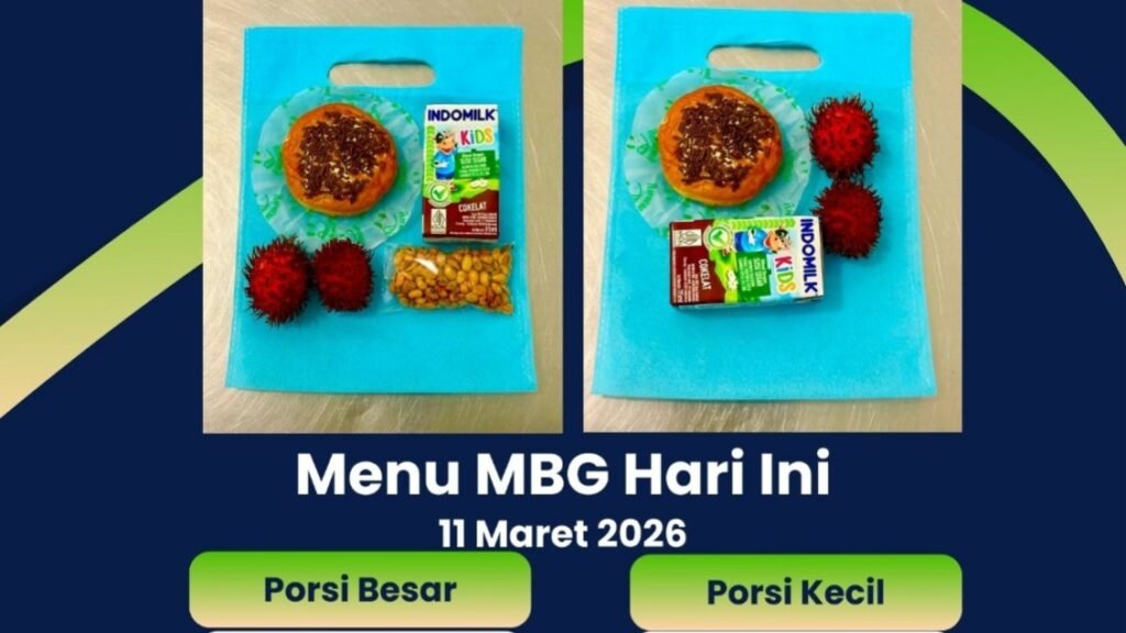 Berdasarkan poster menu MBG tertanggal 11 Maret 2026 yang dipublikasikan oleh SPPG Lombok Timur Jerowaru Paremas, tercantum dua kategori sajian, yakni porsi besar dan porsi kecil.