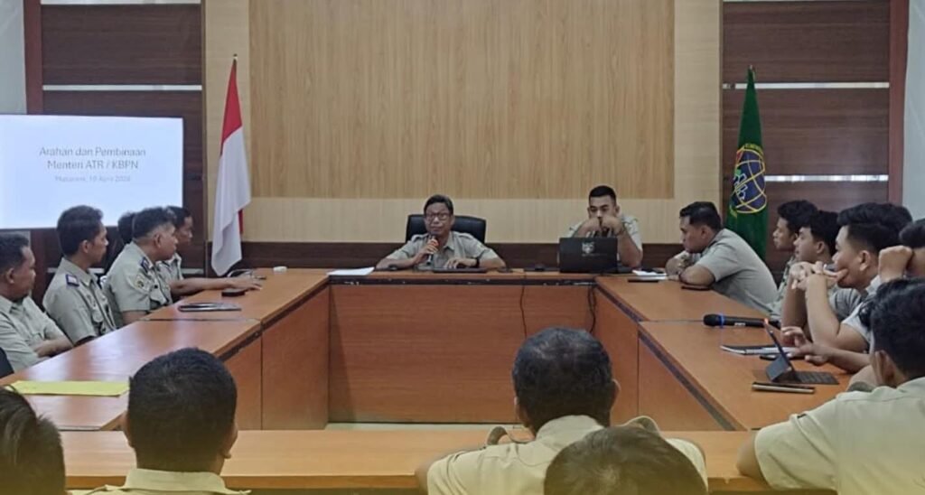 kicknews.today – Kepala Kantor Pertanahan Kabupaten Bima, Lalu Makhyaril Huda, S.ST., M.H., QRMP, bersama para Pejabat Pengawas menggelar rapat internalisasi arahan kepada seluruh jajaran, Senin (13/04/2026). Kegiatan ini merupakan tindak lanjut atas arahan Menteri Agraria dan Tata Ruang/Kepala Badan Pertanahan Nasional (ATR/BPN), Nusron Wahid, saat kunjungan kerja di Mataram pada Jumat pekan lalu.