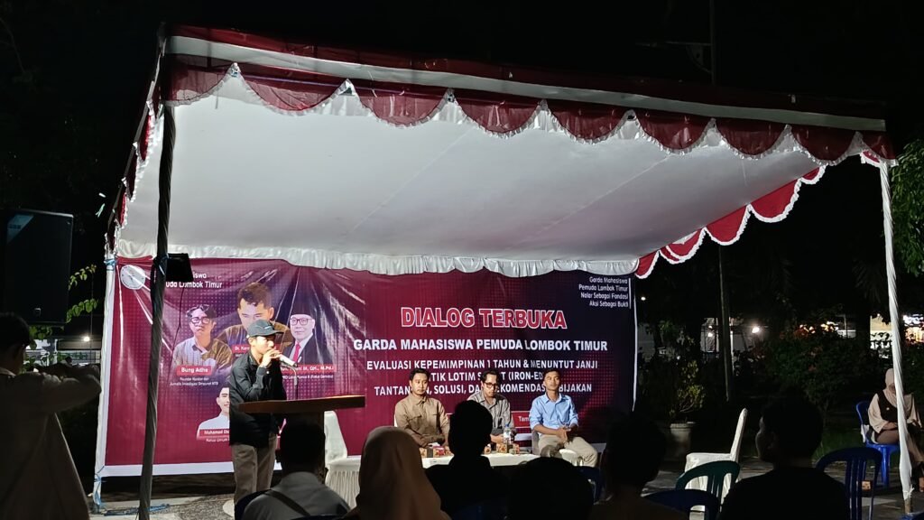 kicknews.today – Garda Mahasiswa Pemuda Lombok Timur (GMP-Lotim) menggelar dialog terbuka pada Sabtu malam, (18/4/2026), di Taman Tugu Selong, dialog tersebut hadir sebagai bentuk evaluasi satu tahun kepemimpinan daerah sekaligus ruang konsolidasi gerakan sipil yang mengangkat tema besar evaluasi 1 tahun kepemimpinan dan menuntut janji politik LOTIM SMART (Iron-Edwin).