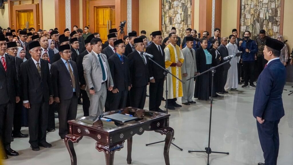 kicknews.today – Gubernur Nusa Tenggara Barat, Lalu Muhamad Iqbal, melantik dan mengambil sumpah jabatan pejabat Eselon III dan Eselon IV di lingkungan Pemerintah Provinsi NTB. Pelantikan berlangsung di Aula Tambora, Kantor Gubernur NTB, Jumat (20/2/2026), sebagai bagian dari langkah penataan organisasi dan penguatan kinerja birokrasi.
