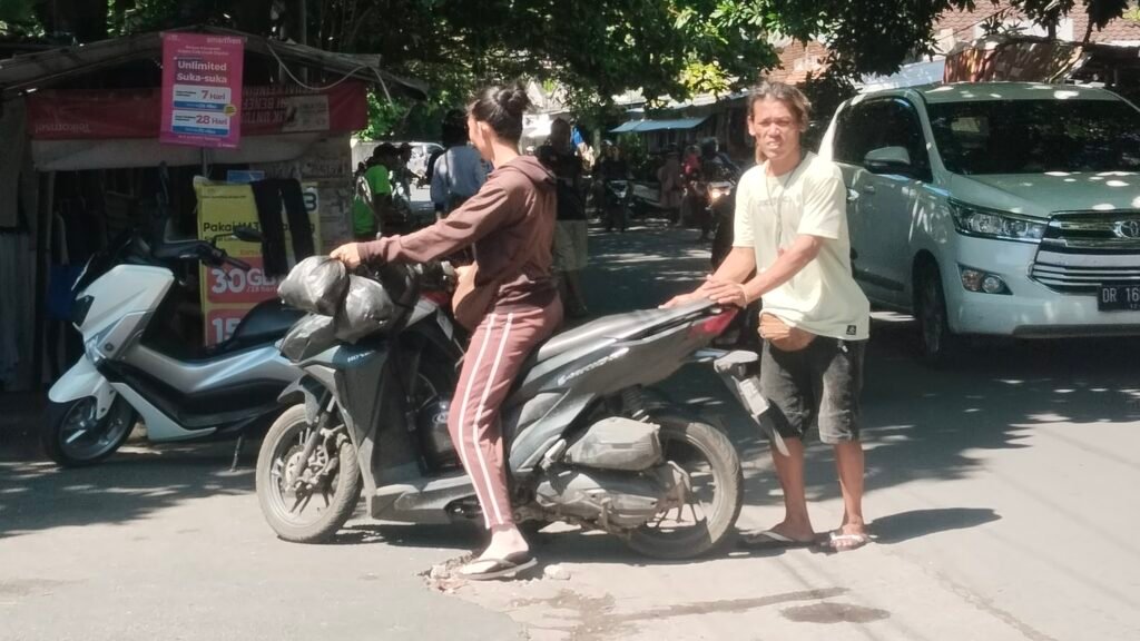 Edy saat melakukan aktivitas di area parkir pakean bekas di pasar karang sukun Mataram (foto kicknews.today/wn)