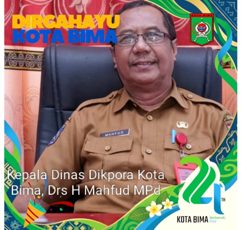 Kepala Dinas Dikpora Kota Bima, Drs H Mahfud MPd mengucapkan selamat HUT Kota Bima ke 24