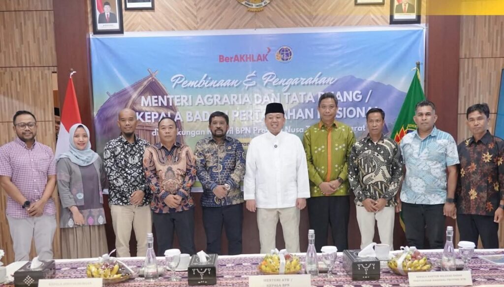 Bertempat di Aula Kantor Wilayah BPN Provinsi NTB, Menteri Nusron memberikan pembinaan dan pengarahan kepada seluruh jajaran di lingkungan Kantor Wilayah BPN Provinsi NTB. Dalam arahannya, ia menekankan pentingnya peningkatan kualitas layanan pertanahan yang profesional, responsif, dan berintegritas.
