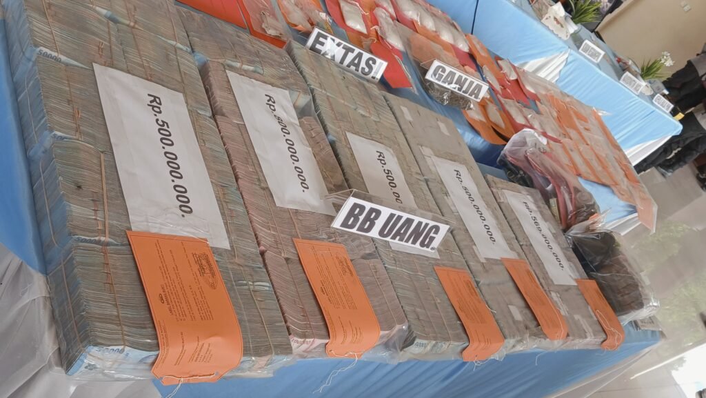 Dari pengungkapan itu, polisi menyita berbagai jenis narkotika, yakni sabu seberat 2.540,632 gram (2,5 kilogram), ganja 53,79 gram, ekstasi 85,5 butir, tramadol 3.562 butir, trihexyphenidyl 28 butir, magic mushroom 50,74 gram, serta uang tunai sebesar Rp 3.068.854.000.