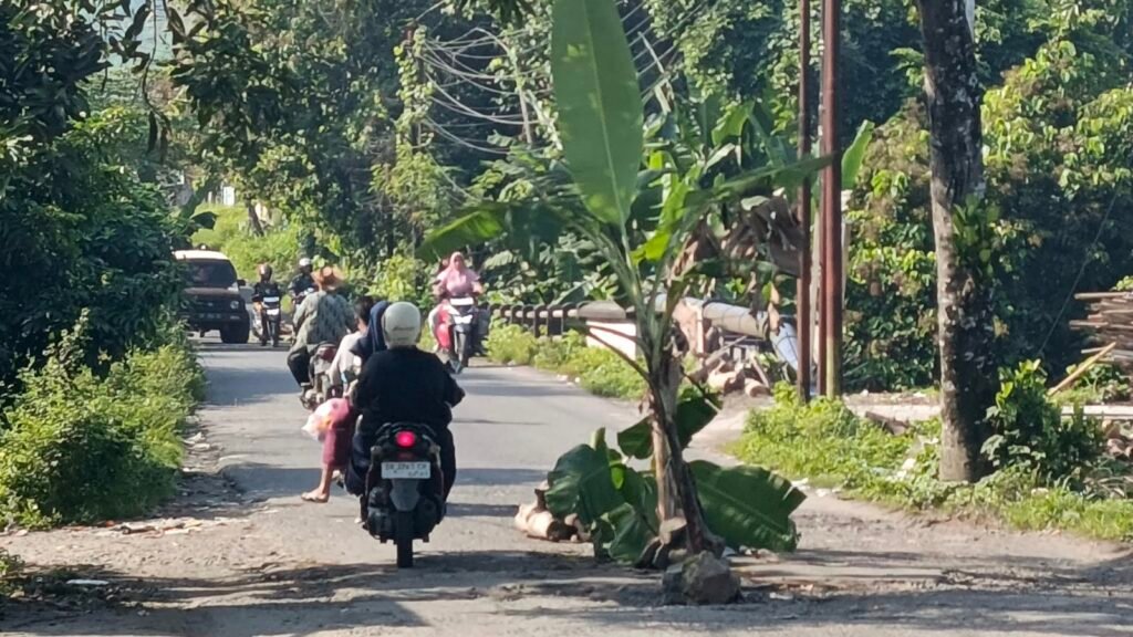 ”Tolong untuk pemerintah agar secepatnya memperbaiki jalan ini, kalo tidak di perbaiki nanti saya akan tanam pohon pisang lagi, ” tegas Agus Karya, Rabu (29/10/2025).